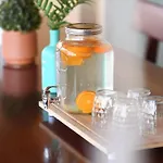 Potpuno opremljena kuhinja opremljena je aparatima za kavu/čaj, kao i hladnjakom, pećnicom i kuhinjskim posuđem neophodnim za samostalno kuhanje.